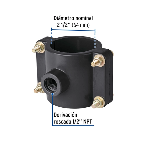 Abrazadera para toma domiciliaria PP 2-1/2′ x 1/2′, Foset