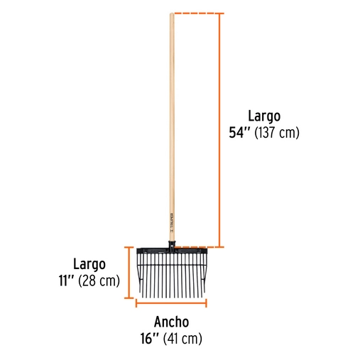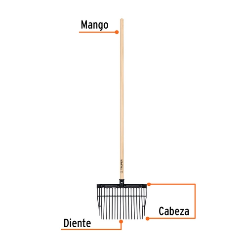 Bieldo para esti‚rcol 16 dientes, mgo largo 54′ cab/pl stica