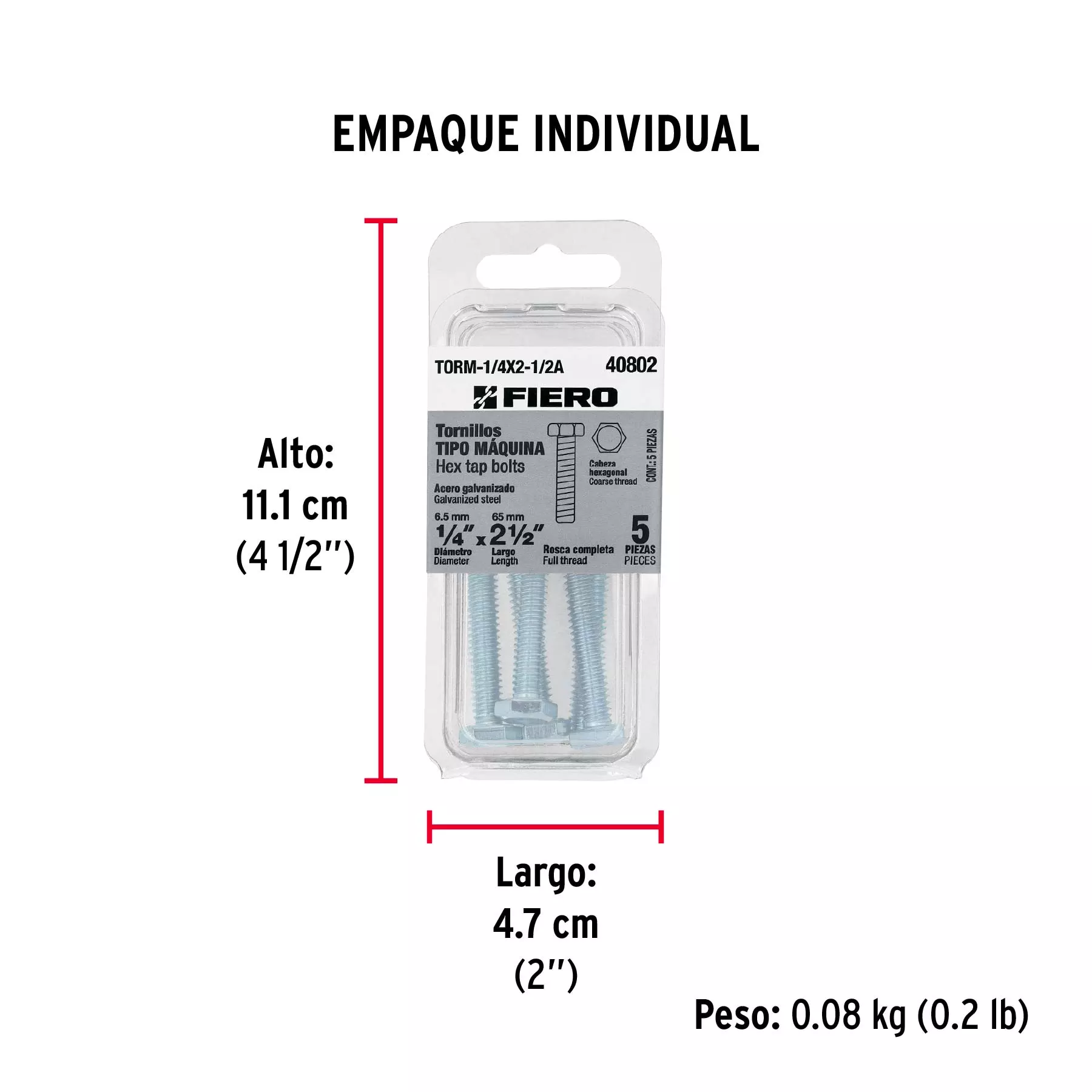 Bl¡ster con 5 tornillos 1/4′ x 2-1/2′ tipo m quina, FIERO