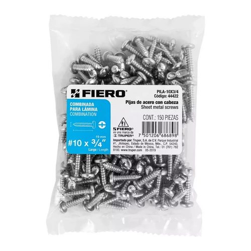 Bolsa con 150 pijas para l?mina, #10 x 3/4″, Fiero
