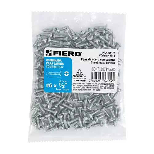 Bolsa con 200 pijas para l mina, #6 x 1/2′, Fiero