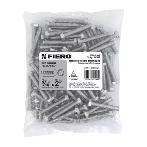 Bolsa con 80 tornillos 5/16′ x 2′ tipo m quina, Fiero