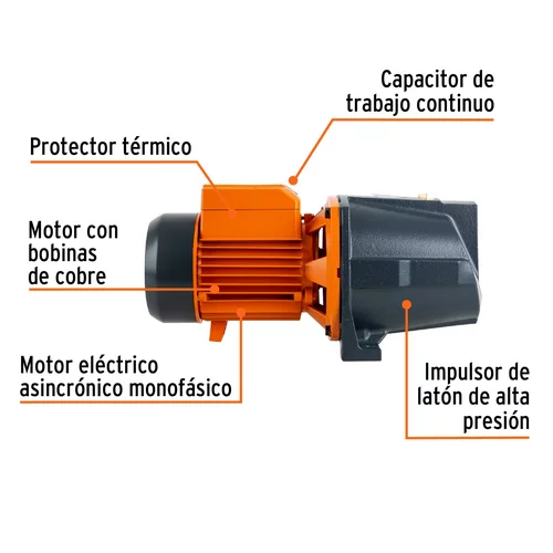 Bomba el‚ctrica tipo jet para agua, hierro, 1 HP, Truper