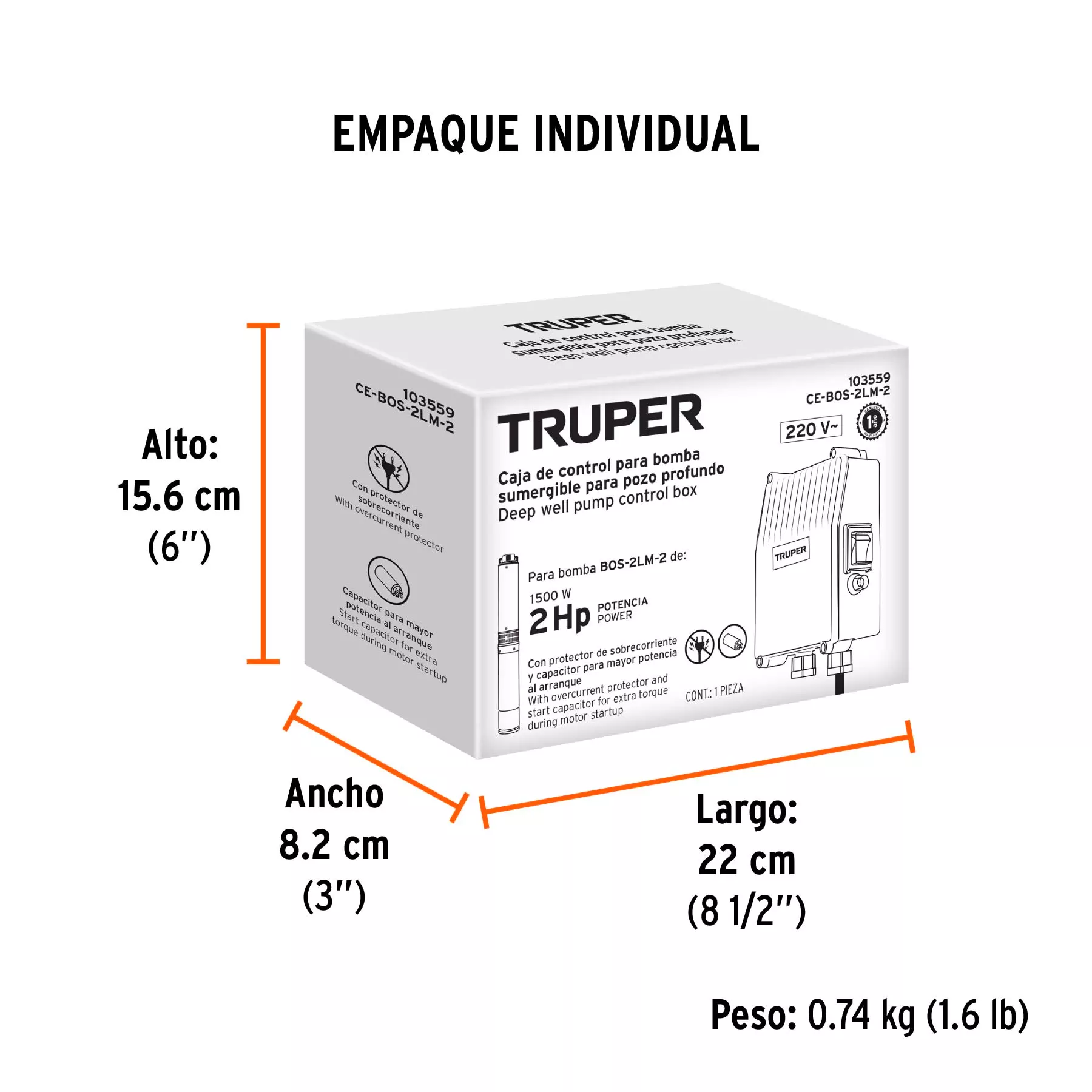 Caja de control p/bomba pozo profundo 2 HP, 220V, Truper
