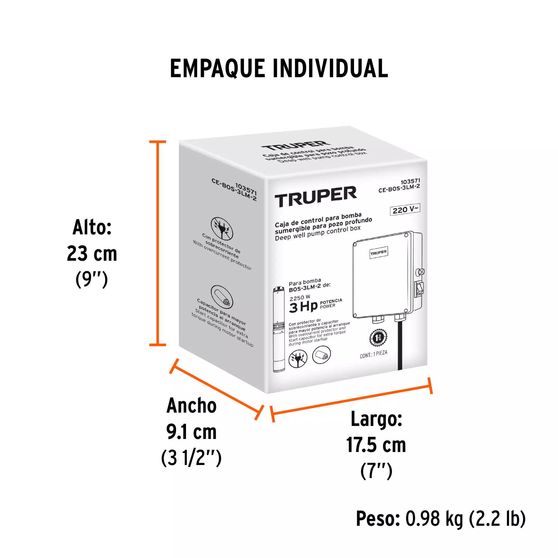 Caja de control p/bomba pozo profundo 3 HP, 220V, Truper