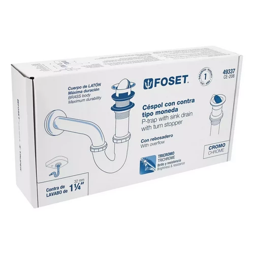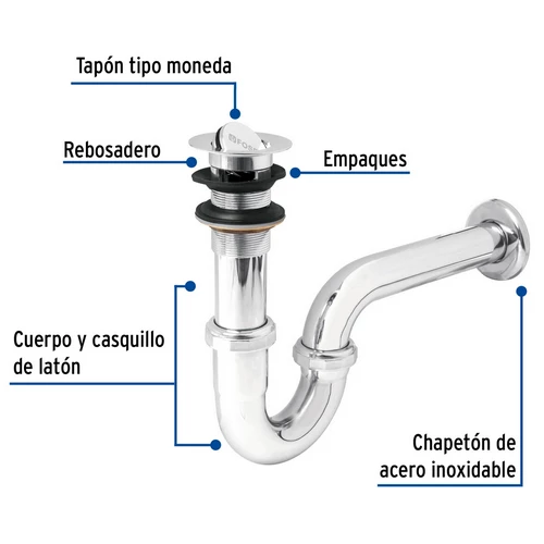 Céspol 1-1/4″, contra tipo moneda, latón cromo, para lavabo