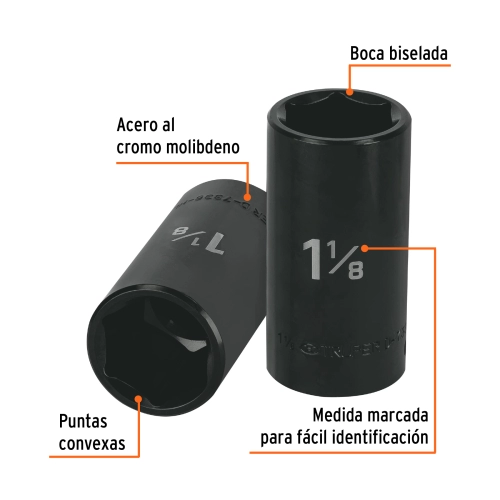 Dado De Impacto, 6 Puntas, Cuadro 1/2» De 1-1/8′