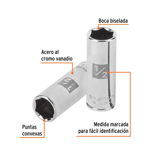 Dado Largo Cuadro 1/4 De 6 Puntas De 1/2»