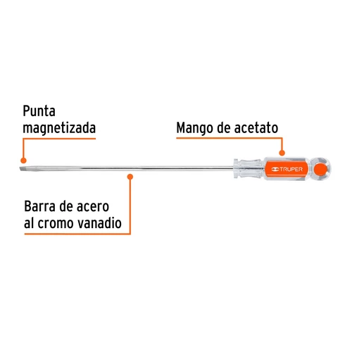 Desarmador cabinet 3/16′ x 8′ mango de acetato, Truper