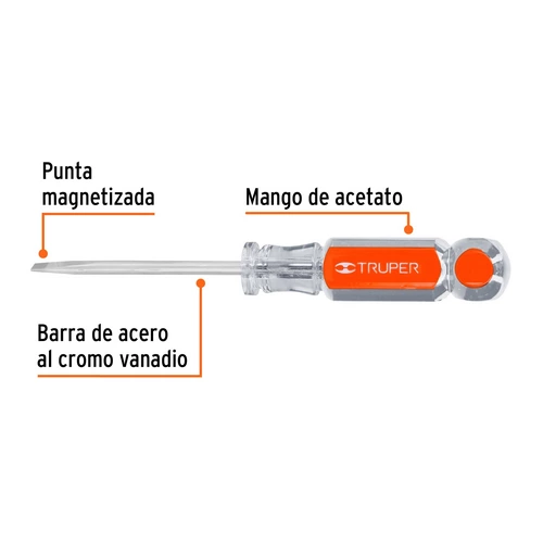 Desarmador Truper Plano Mango De Acetato 3/16 X 3»