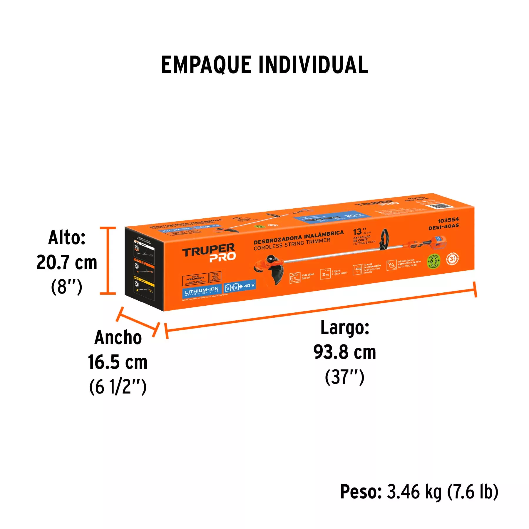Desbrozadora inal mbrica 40V, sin accesorios, TRUPER PRO