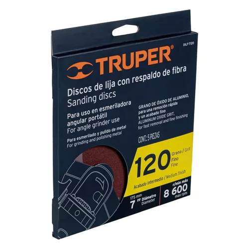 Disco de lija de 7′ con respaldo de fibra, grano 120, Truper