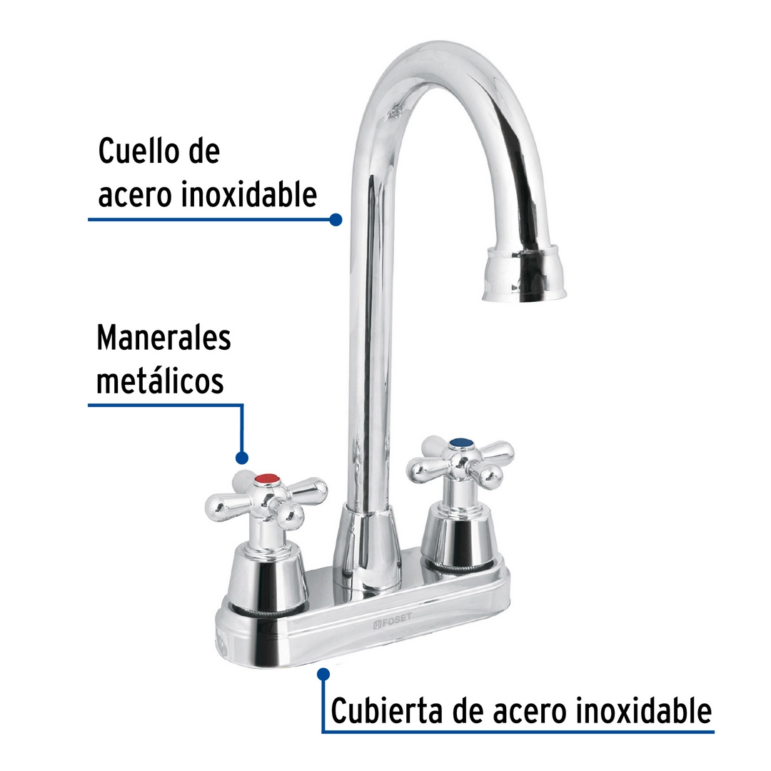 Mezcladora lavabo 4″ cromo, tipo bar, cruceta, AQUA