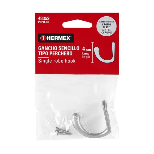 Gancho sencillo tipo perchero, cromo mate, Hermex