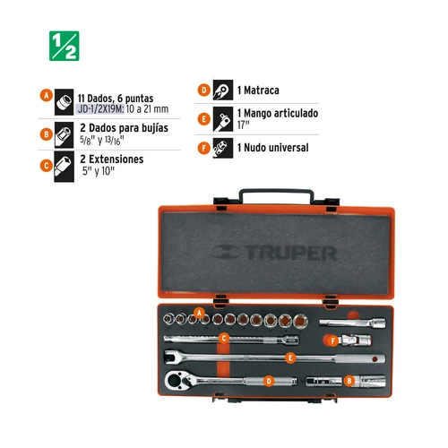 Juego de 18 herramientas cuadro 1/2′ mm para mec nico