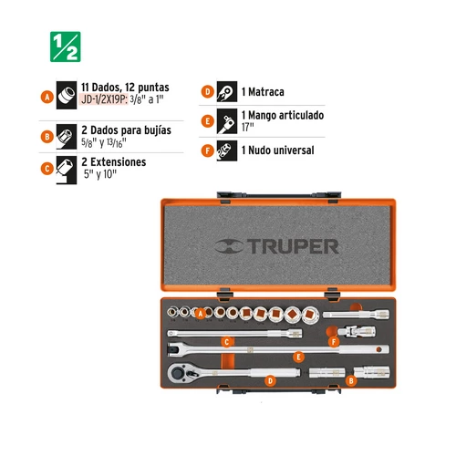 Juego de 18 herramientas cuadro 1/2′ std para mec nico