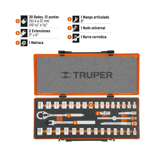Juego de 36 herramientas cuadro 3/8′ std y mm para mec nico