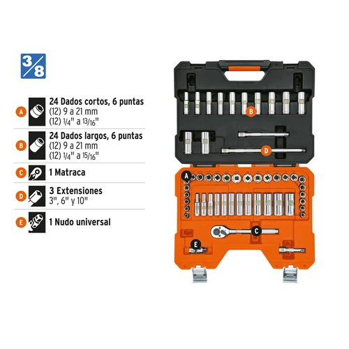 Juego de 53 herramientas cuadro 3/8′ mm para mec nico