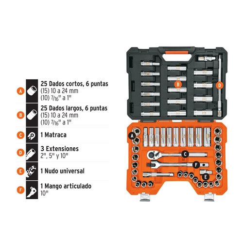 Juego de 56 herramientas cuadro 1/2′ std y mm para mec nico