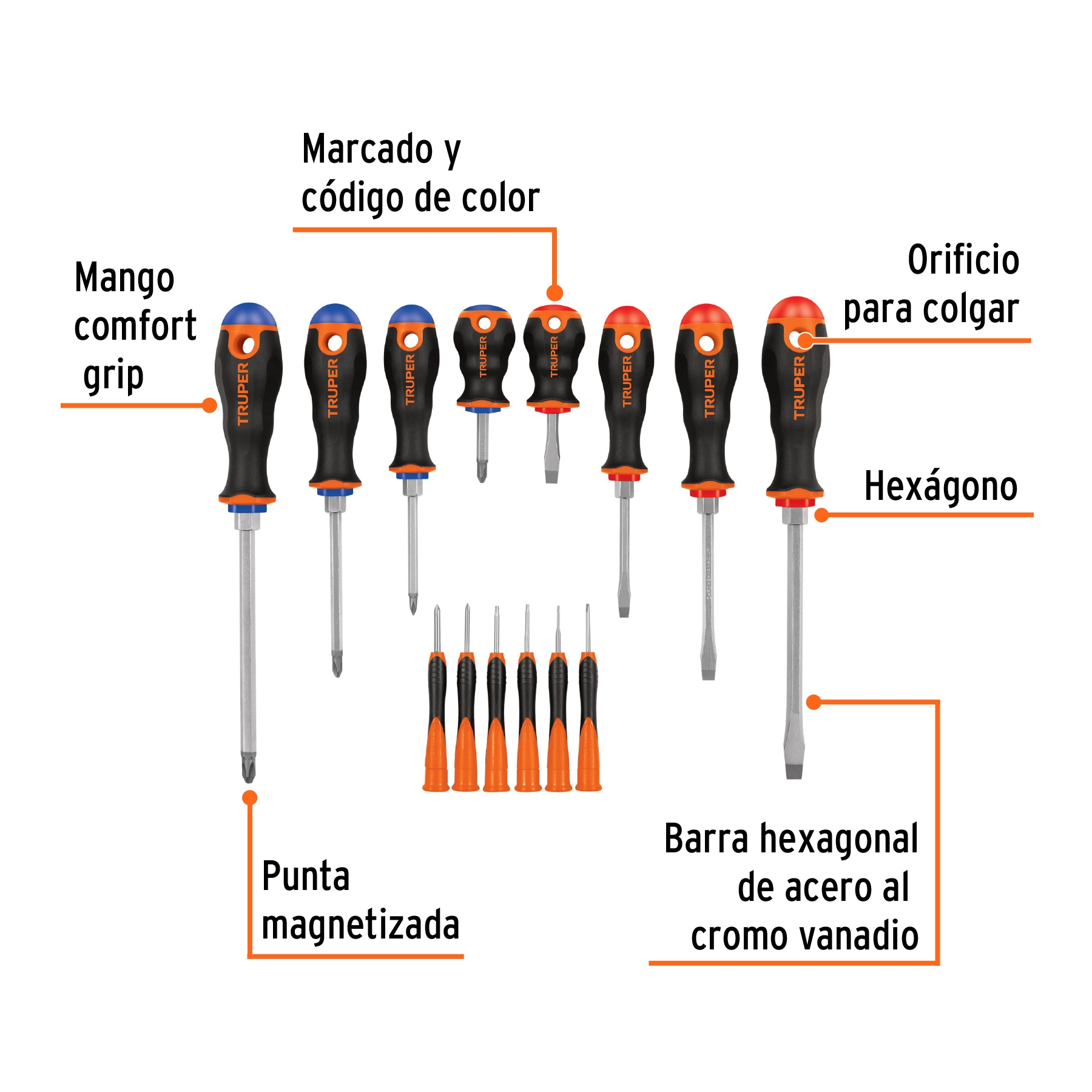Juego de 8 desarmadores mango Comfort Grip y 6 de joyero