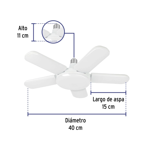 Lampara De Led 50 W, Tipo Ventilador Con 5 Aspas