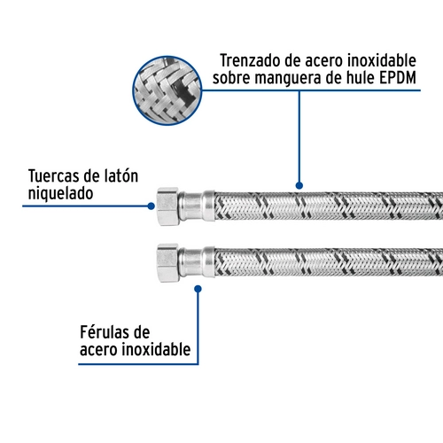 Manguera para boiler, acero inox, 1/2″x1/2″, 150 cm, Foset