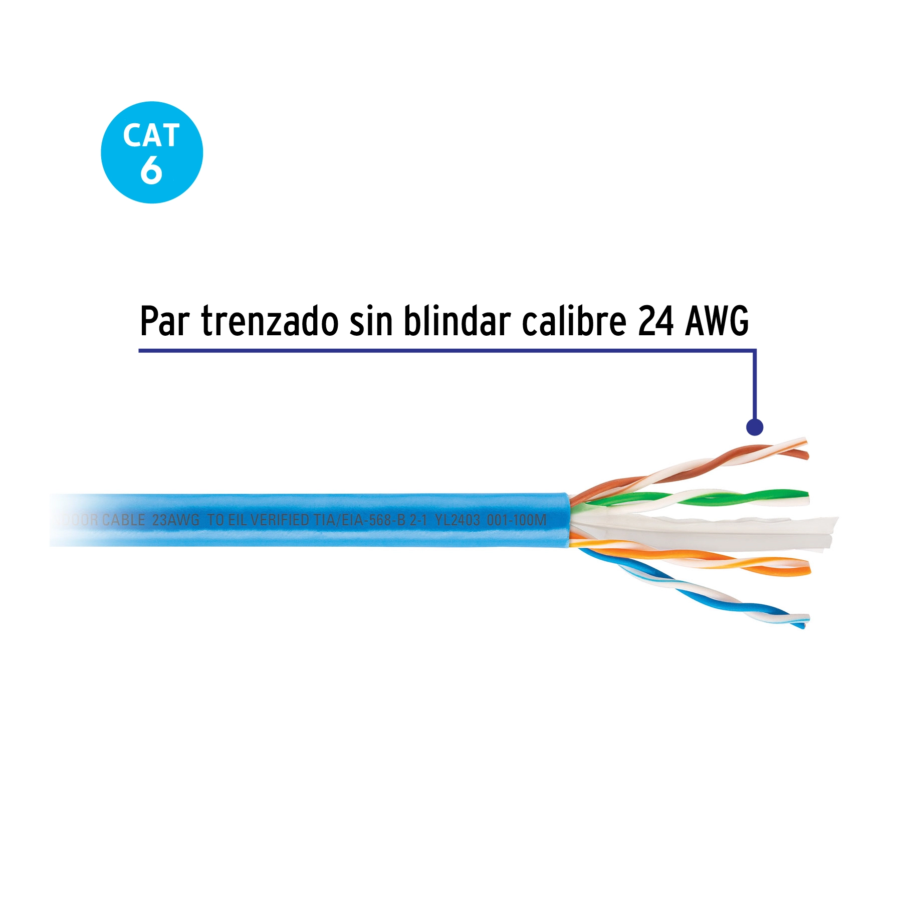 Metro de cable UTP CAT6, Bobina de 100m, azul, VOLTECK