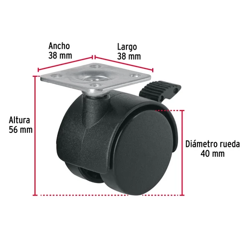 Rodaja Tipo Yoyo De 40 Mm Con Placa, Con Freno, Fiero