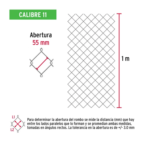 Rollo 20 m x 1 m malla cicl¢nica calibre 11 abertura 55 mm