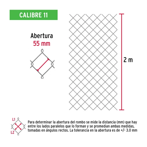 Rollo 20 m x 2 m malla cicl?nica calibre 11 abertura 55 mm