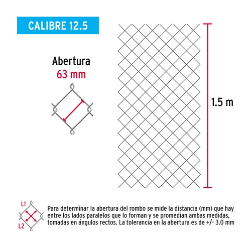 Rollo 20m x 1.5m malla cicl¢nica calibre 12.5 abertura 63 mm