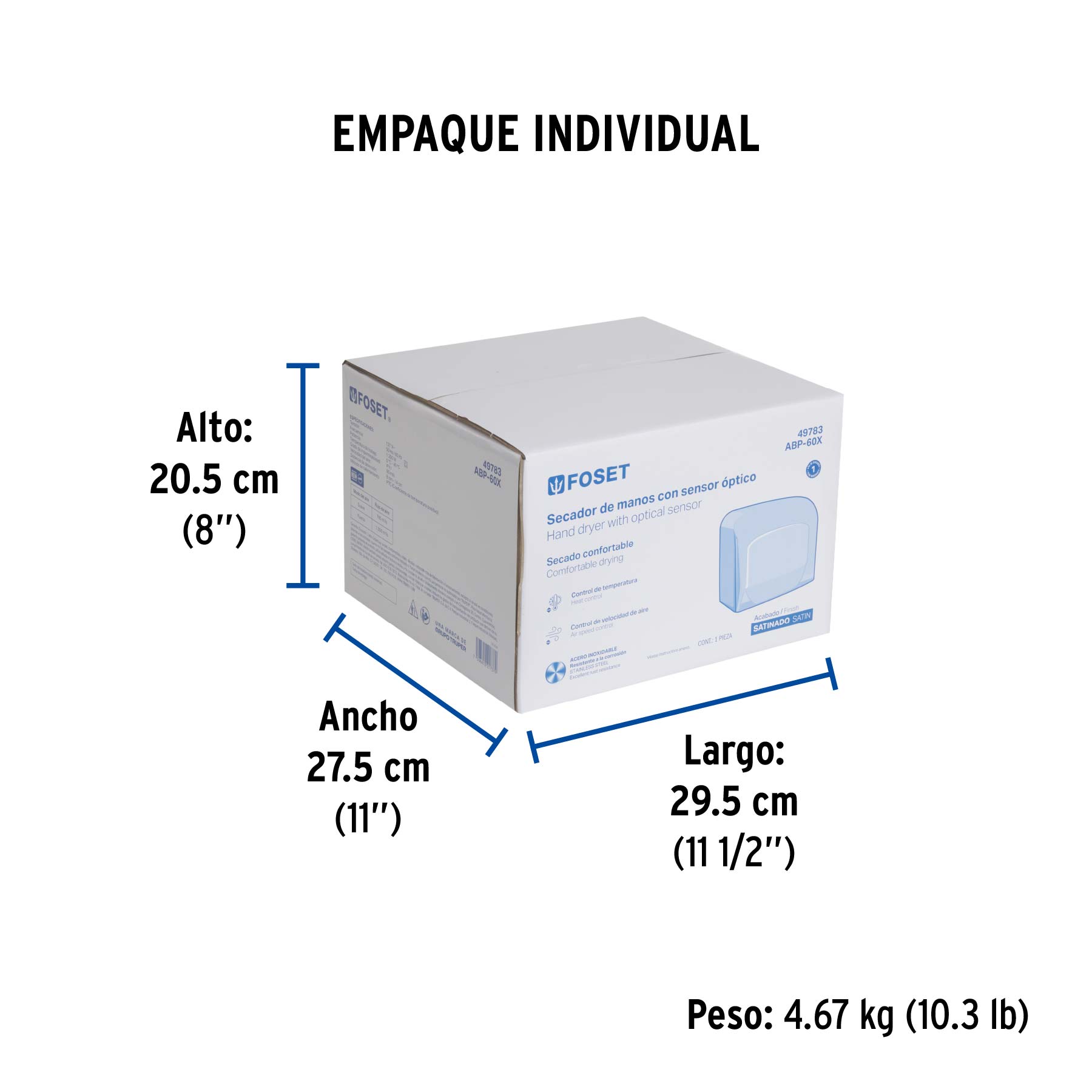 Control para temperatura y velocidades ajustables (suave y fuerte)
