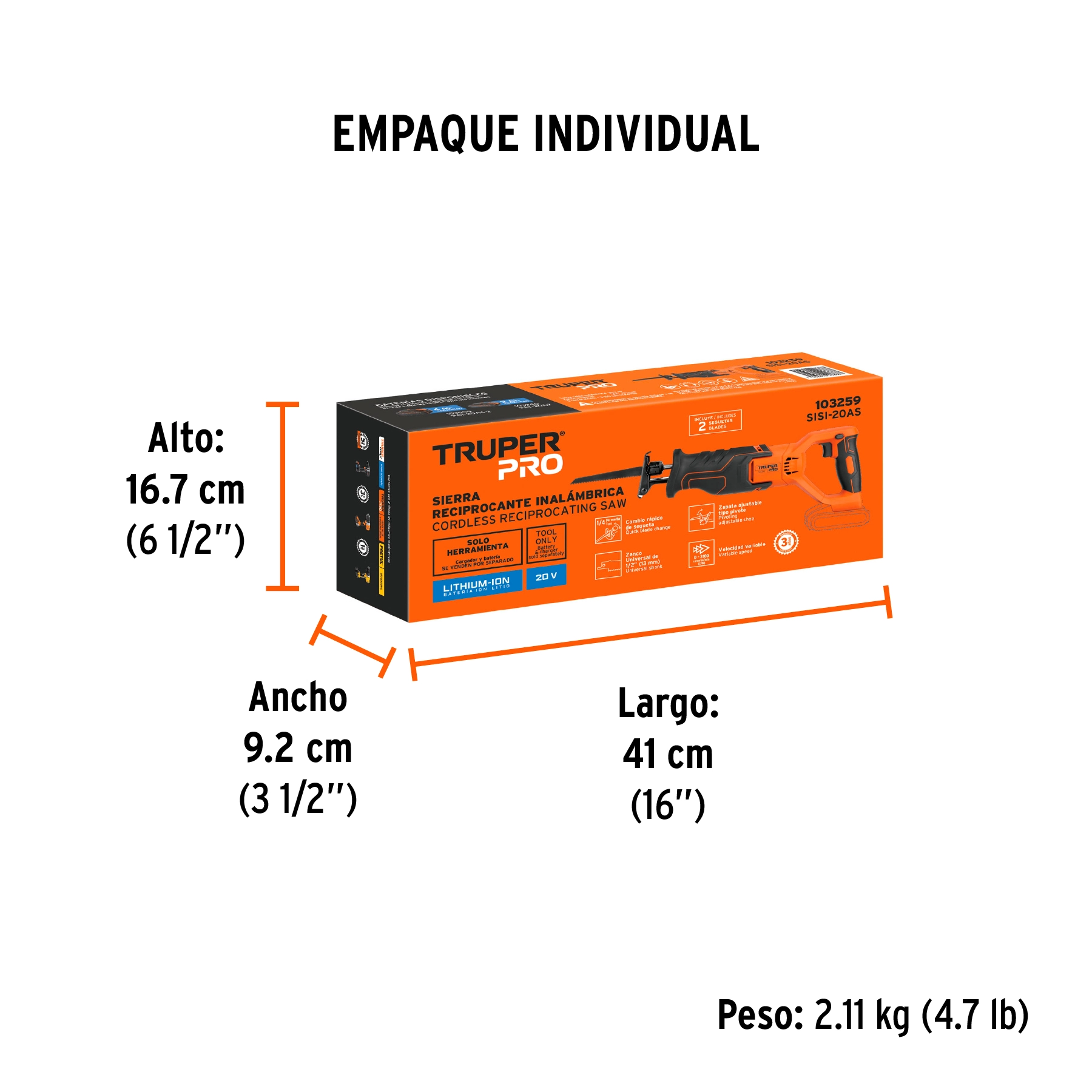 Sierra sable, 20V, sin accesorios, TRUPER PRO
