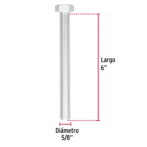 Tornillo Acero Galvanizado Tipo Maquina, 5/8X6», 4 Pzas