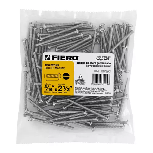 Tornillo Tipo Estufa 3/16X2 1/2»,100Pz